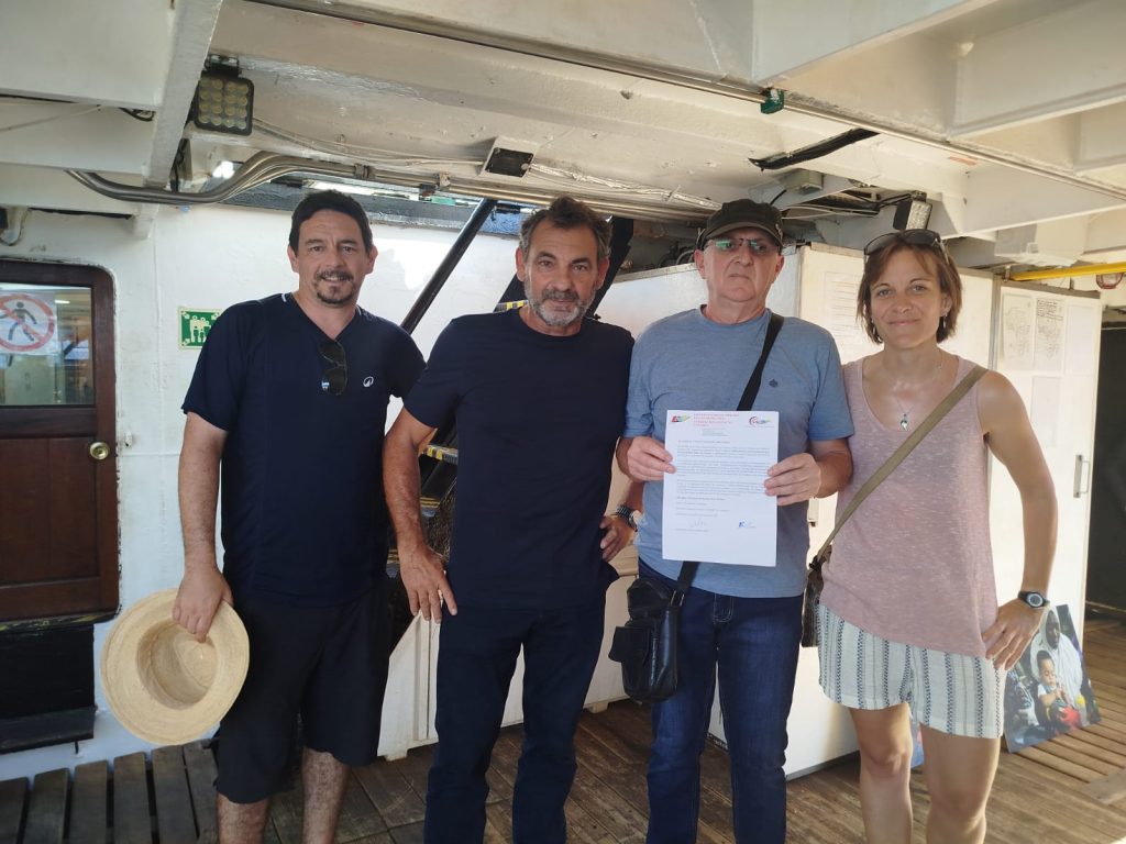 Nuestros compañeros y compañeras en el barco Open Arms con el Capitán, Óscar Camps Gausachs