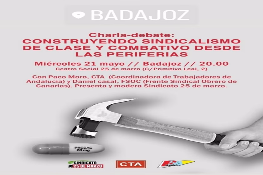El miércoles 21 de mayo se celebro en el Centro Social 25M en Badajoz, un acto conjunto sobre un sindicalismo claramente de clase y combativo, organizado por el sindicato 25 de Marzo