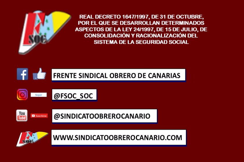 Real Decreto 1647/1997, de 31 de octubre, por el que se desarrollan determinados aspectos de la Ley 24/1997, de 15 de julio, de consolidación y racionalización del sistema de la Seguridad Social